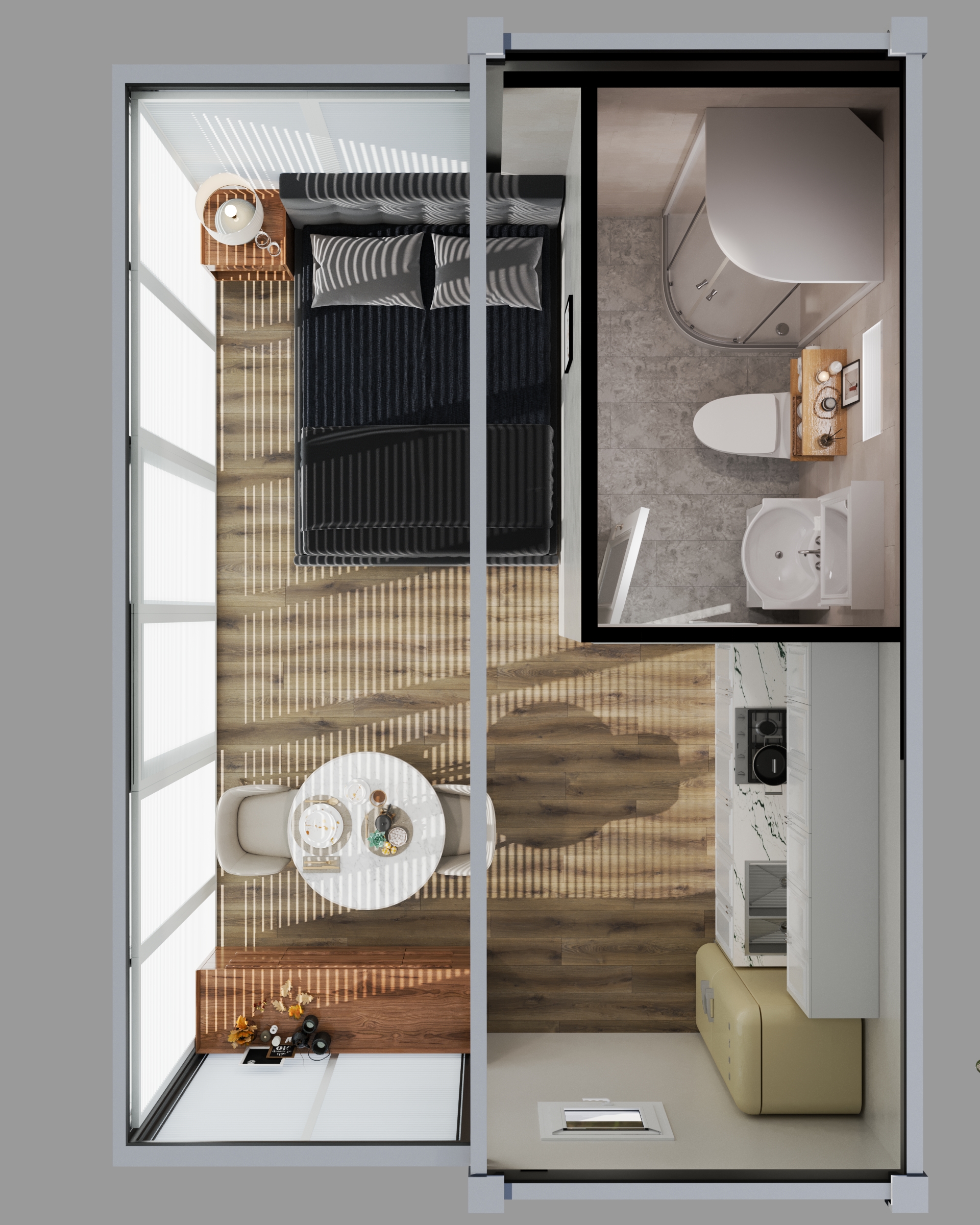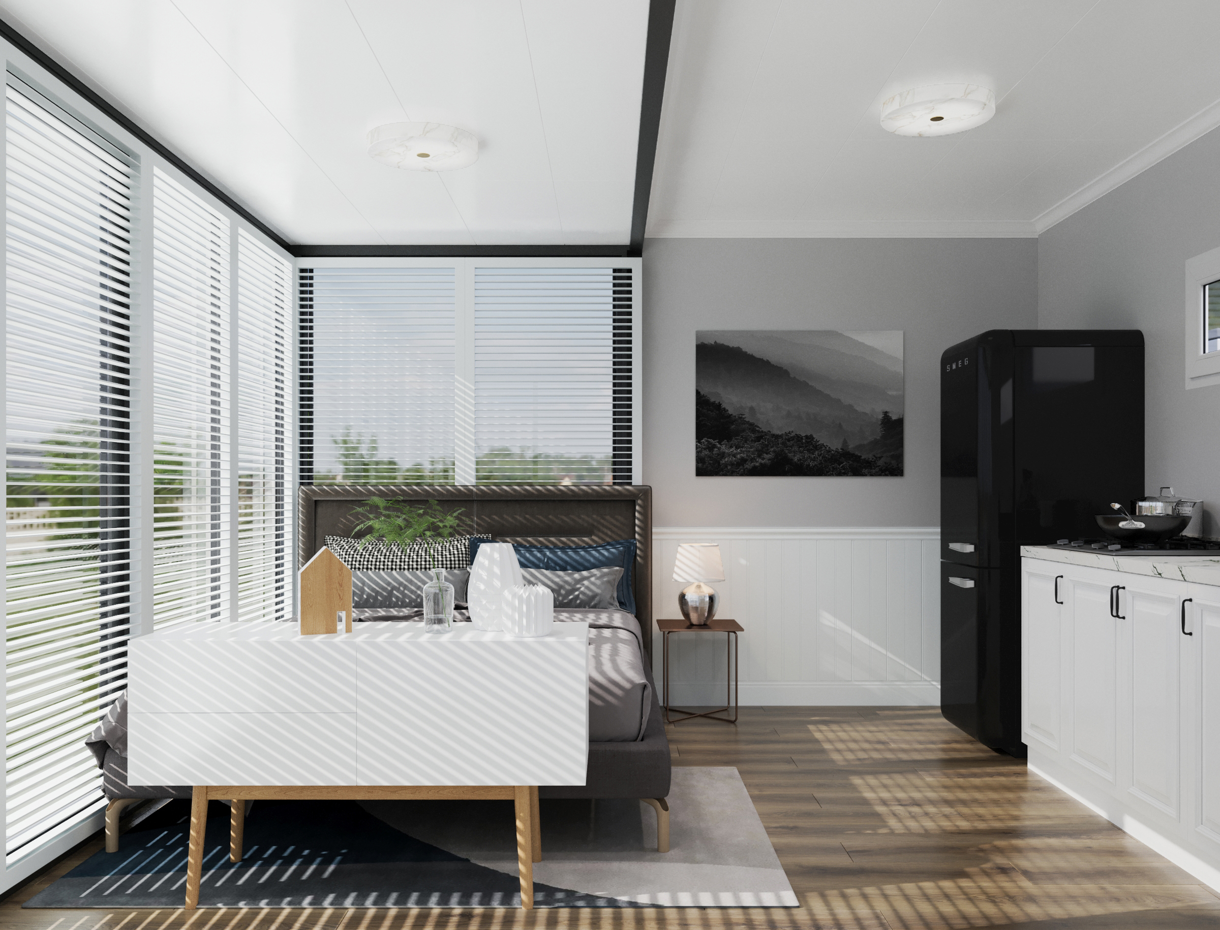 The Bungalow transforms just 23.54 m² into a light-filled studio tiny home that feels open, calm, and unexpectedly luxurious. Wall-to-wall double-glazed glass captures the view and floods the space with light, while a 3 mm hot-dipped galvanised steel frame and 75 mm EPS insulation provide strength and year-round comfort in Australian conditions. Premium SPC flooring, soft-close kitchen cabinetry, a full Rainmaker shower, and solar-ready wiring come standard — making The Bungalow an ideal backyard retreat, guest studio, or high-appeal Airbnb tiny house.