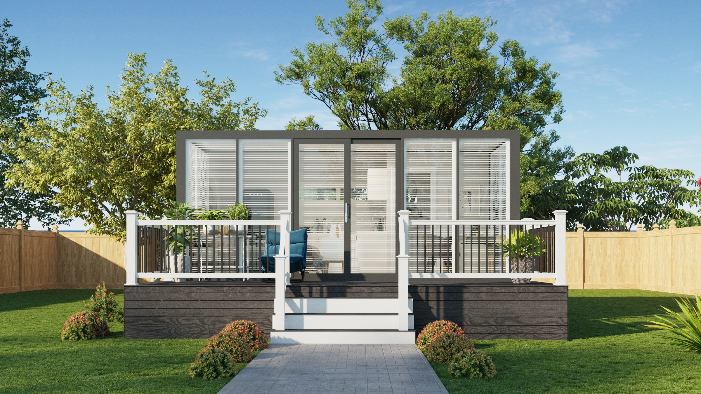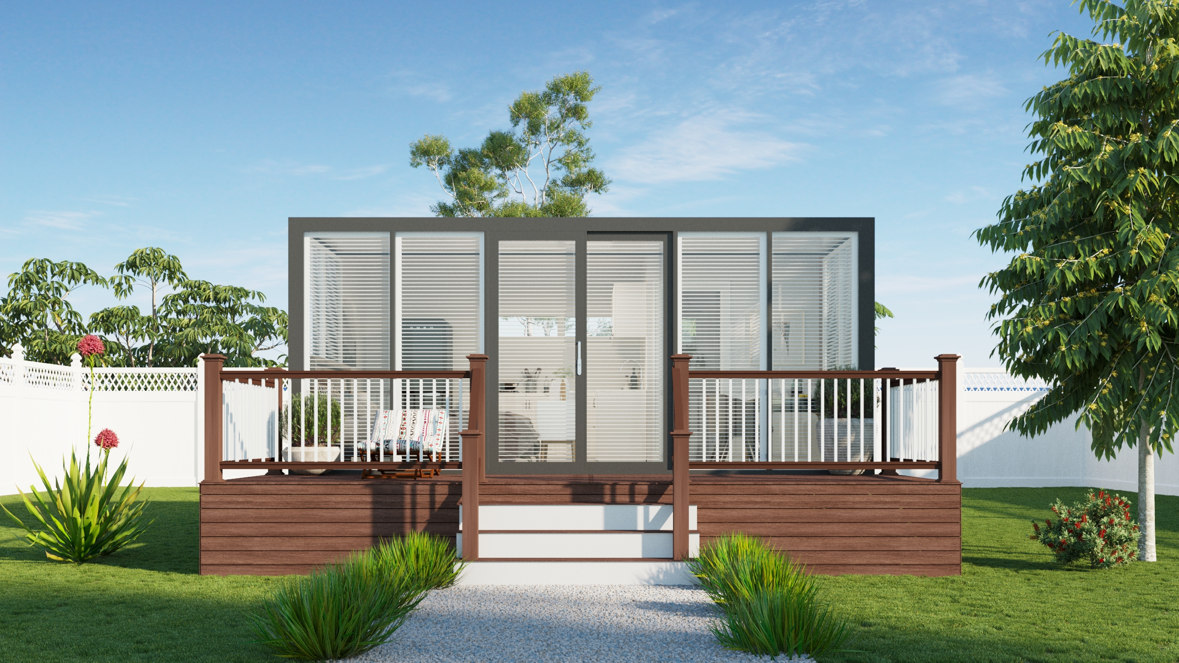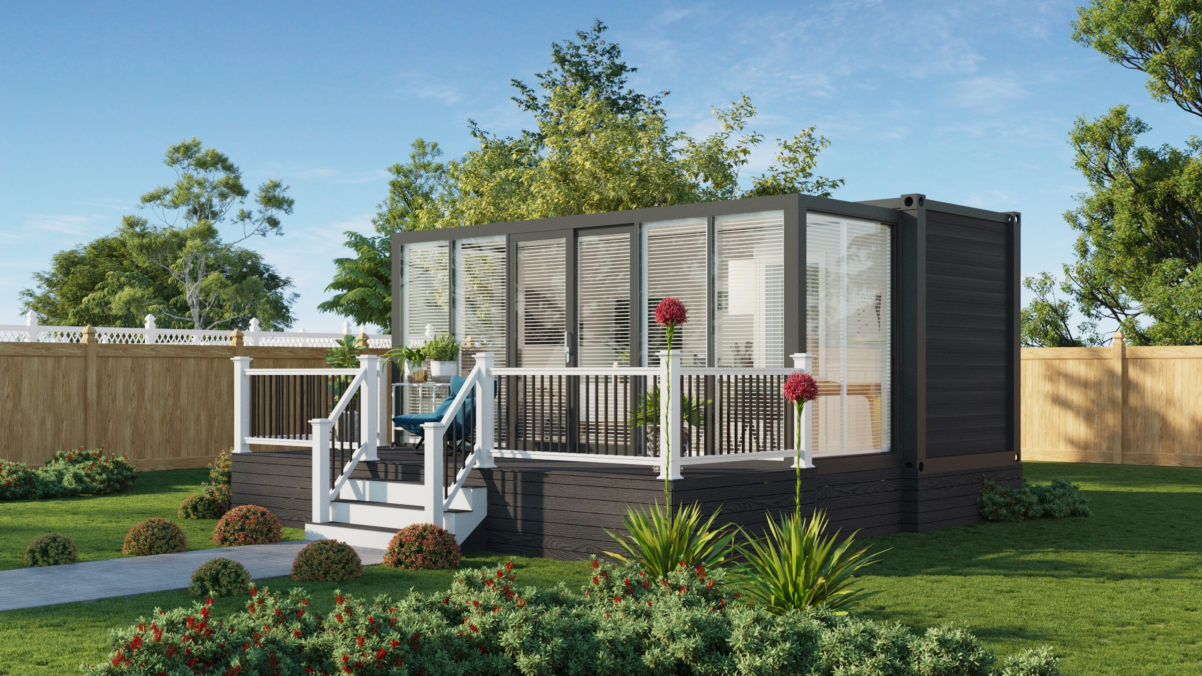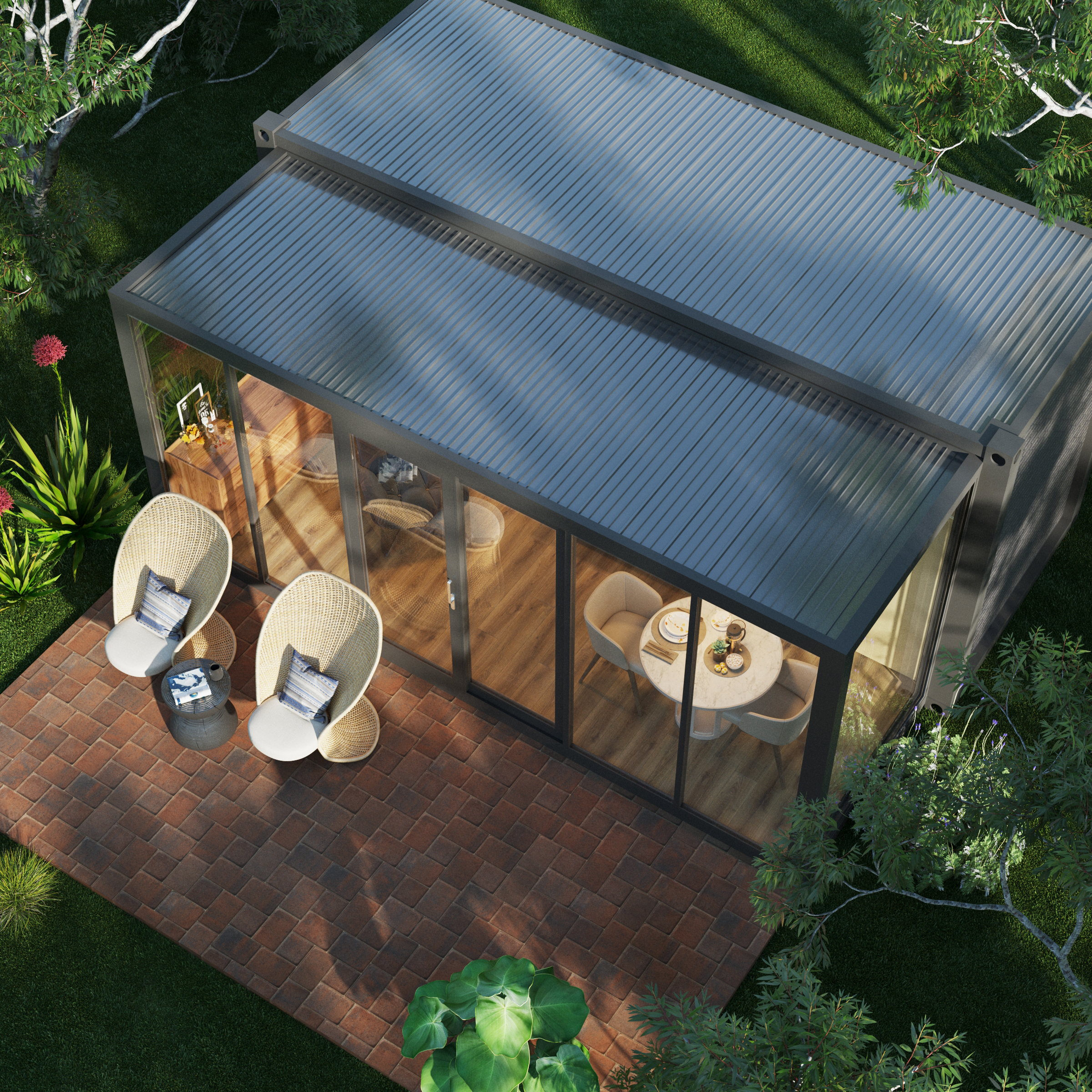The Bungalow is designed to blur the line between inside and out, with a full glass front that floods the space with light and views. Perfect for studio living or a standout Airbnb, it’s made for places where the outlook deserves centre stage.