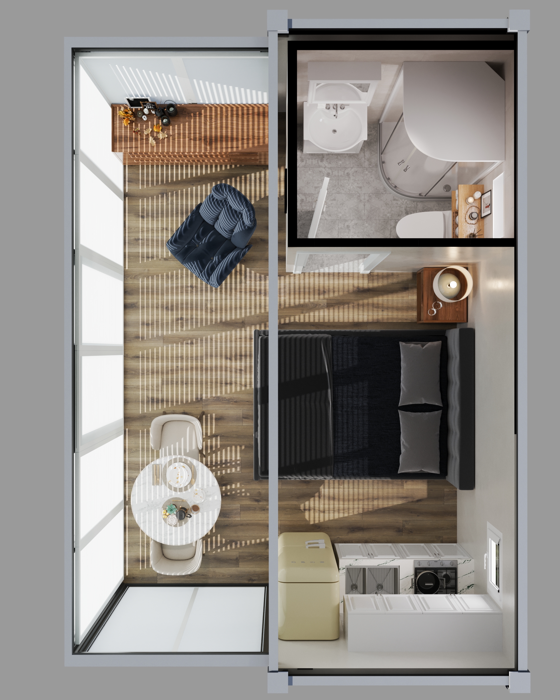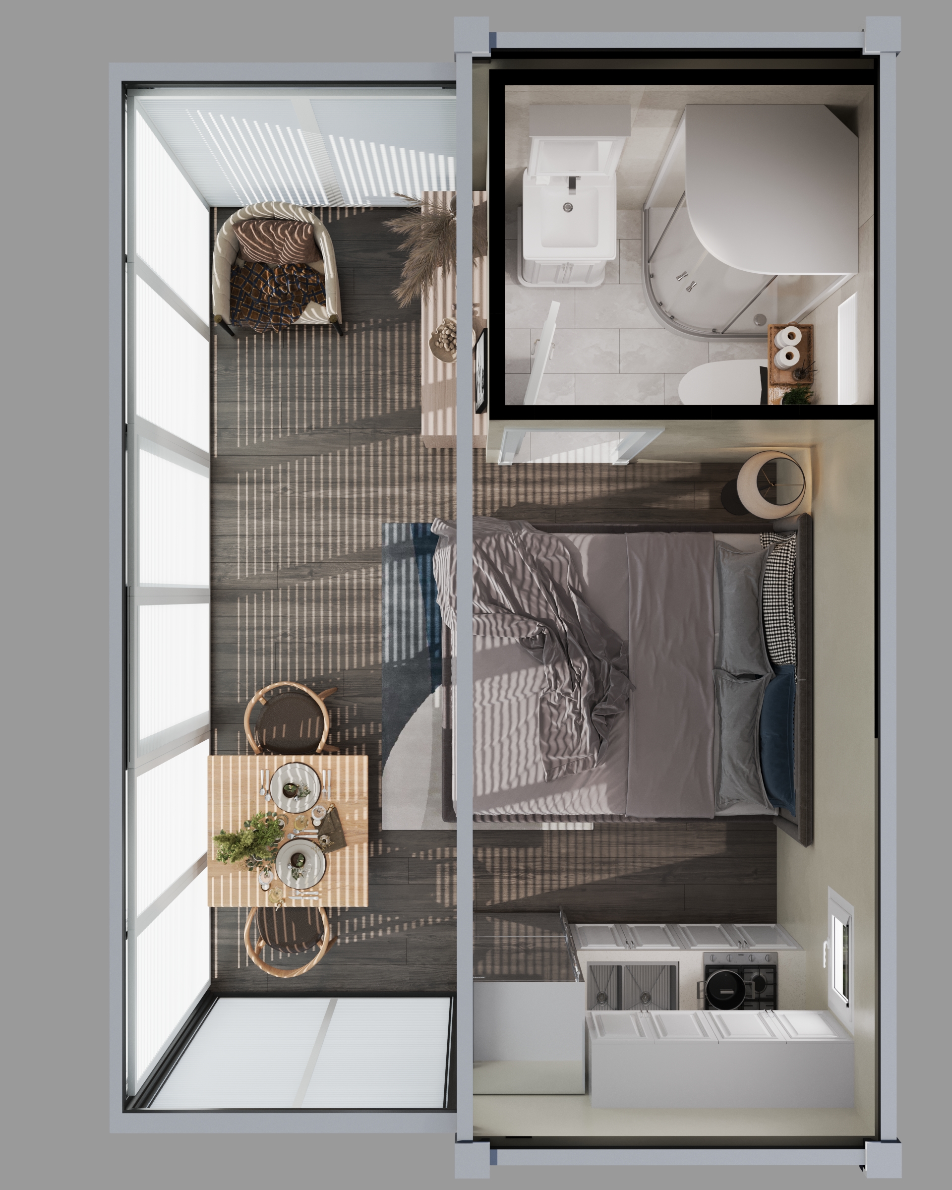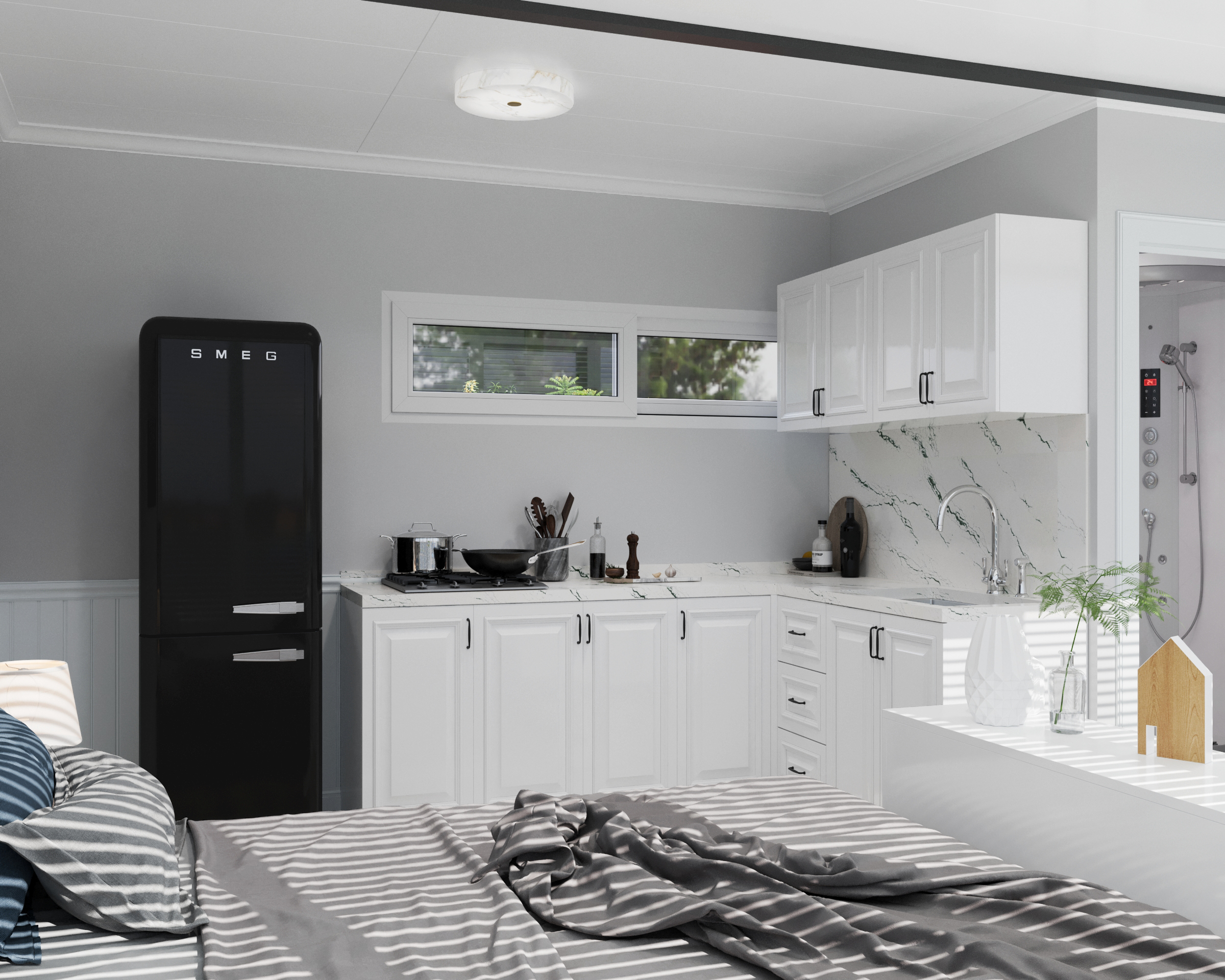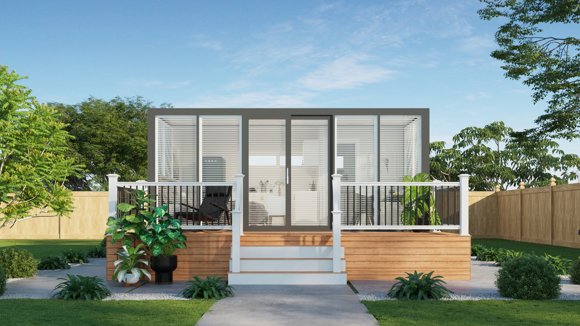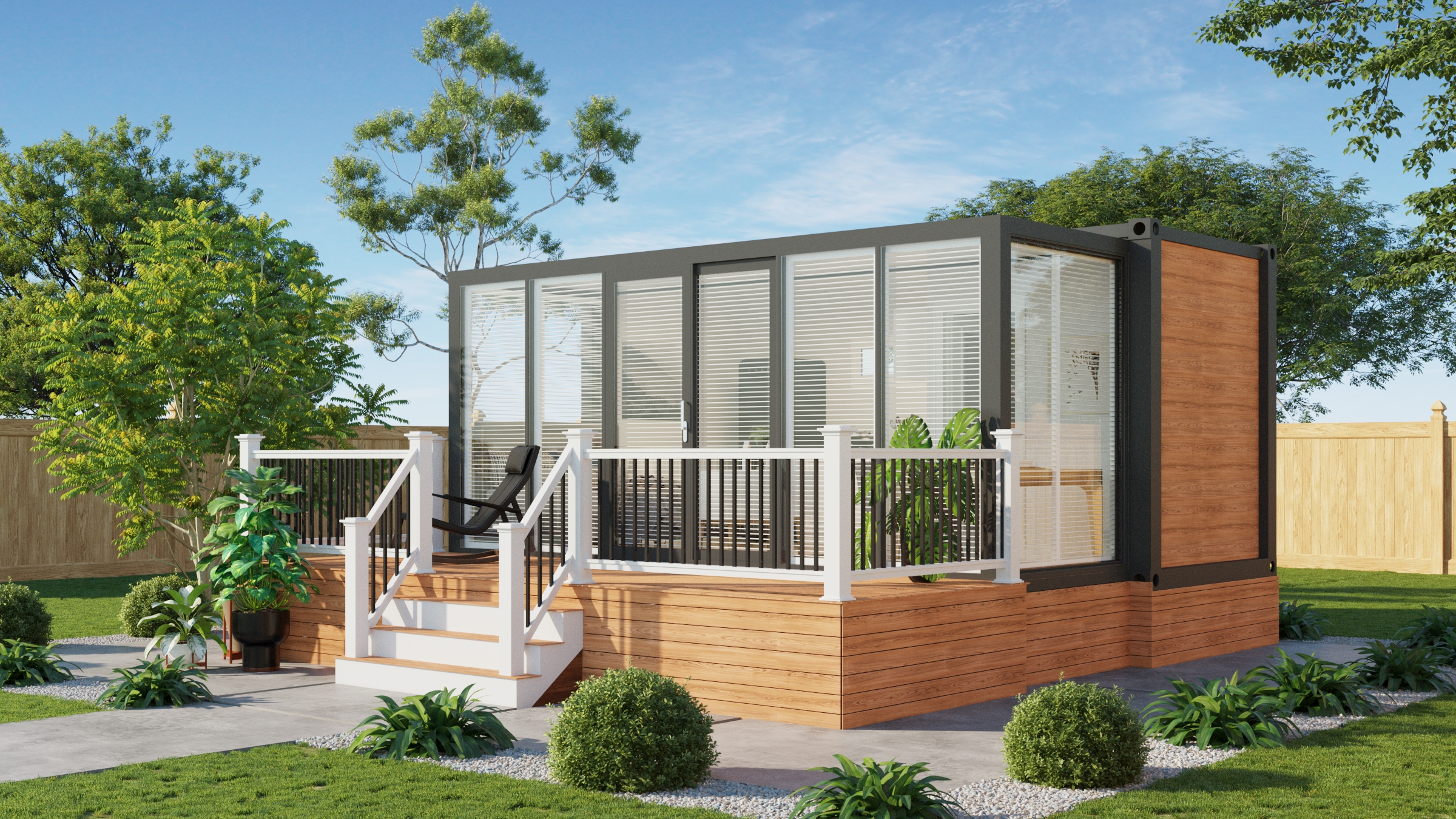 The Bungalow is designed to blur the line between inside and out, with a full glass front that floods the space with light and views. Perfect for studio living or a standout Airbnb, it’s made for places where the outlook deserves centre stage.