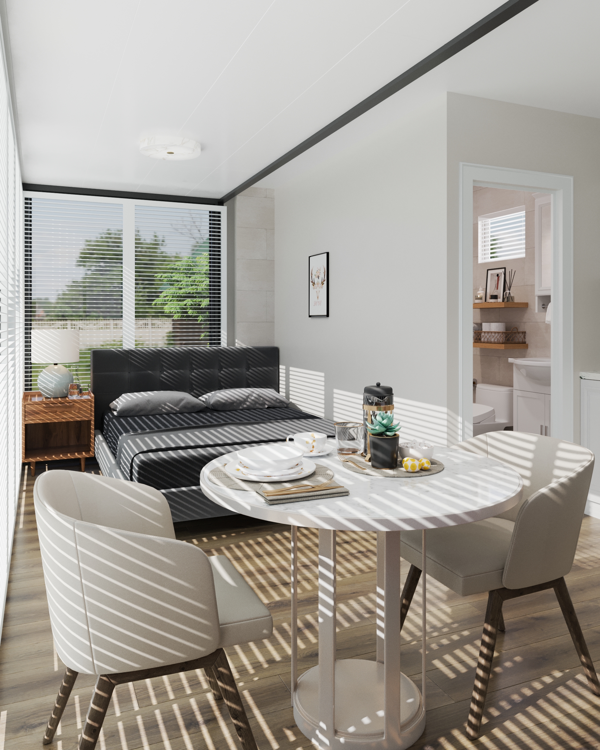 The Bungalow’s clever studio layout makes the most of every inch of its 23.54 m² footprint, creating a light-filled studio tiny home designed around views and effortless living. With its glass-front design, it’s ideal as a backyard bungalow, guest accommodation, or a high-appeal Airbnb tiny house for those wanting to showcase a beautiful outlook.
